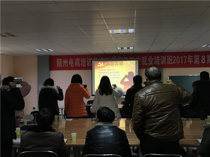 1月19日,中共隨州市人力資源和社會係障局直屬機關(guān)委員會,決定成立了“中共隨州市民辦職業(yè)培訓(xùn)機構(gòu)聯(lián)合支部"。并組織已注冊登記的11家民辦職業(yè)培訓(xùn)機構(gòu)黨員開展主題黨日活動,舉行黨員宣誓,溫習(xí)黨的章程,學(xué)習(xí)黨的“十九大精神"。會議在我公司風(fēng)度電商基地順利召開,使全體民辦職業(yè)培訓(xùn)機構(gòu)黨員受到新時代黨的知識熏陶,激發(fā)其不忘初心,充分發(fā)揮好黨員在民辦培訓(xùn)機構(gòu)建設(shè)中的模范作用。并結(jié)合我公司的電子商務(wù)培訓(xùn)學(xué)校與其他民辦學(xué)校開展年度總結(jié)交流,我公司總經(jīng)理余文武代表隨州市電子商務(wù)培訓(xùn)學(xué)校在會議上發(fā)言演講。